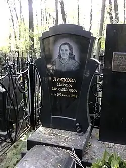 - ↑ Могилу Лужкова увенчал Георгий Победоносец: «Был эпохой в истории Москвы». Дата обращения: 27 сентября 2021. Архивировано 27 сентября 2021 года.