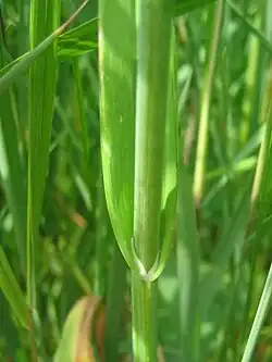Листья в числе трёх—пяти, шириной 4—10 мм, линейные, не дудчатые, к верхушке постепенно суженные, по краю и средней жилке шероховатые, очень короткие, едва превышающие середину стебля.