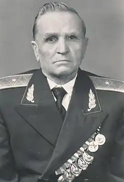 - ↑ Указ Президиума ВС СССР № 220/270 от 21.02.1945, за выслугу (25) лет в электронном банке документов «Подвиг народа» (архивные материалы ГАРФ. Ф. Р7523. Оп. 4. Д. 336. Л. 74.).