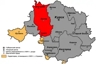 По постановлению Президиума ВЦИК от 12 мая 1924 года Льговский уезд был укрупнён. В его состав была передана территория Дмитриевского уезда, а также часть Суджанского уезда, включая город Суджу.