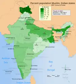 После того как в 1947 году Британская Индия была разделена на два независимые государства (первоначально: Индийский Союз и Доминион Пакистан), оставшиеся в Индии мусульмане стали крупным религиозным меньшинством этой страны. С тех пор в Индии те или другие люди считают последователей ислама потенциальной «пятой колонной», хотя они продемонстрировали свою лояльность стране в ходе войн с единоверцами из Пакистана.