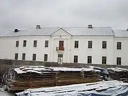 По периметру замкового двора размещались хозяйственные постройки. В восточной части крепостной стены была калитка, выходившая на второй мост[2]. На участке от юго-восточной башни и до въездных ворот стоял «дом на подклети», три «больших постройки» и «дворец», где жили урядники, а рядом — замковая винокурня[3]. За также земляными укреплениями находятся два двухэтажных корпуса, возведенных на месте древних построек XVIII — 1-й половины XIX века.