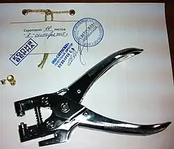 - ↑ ГОСТ 15470—70 Архивная копия от 7 января 2017 на Wayback Machine. Фурнитура для изделий кожевенно-галантерейной, текстильно-галантерейной, обувной и швейной промышленности. Термины и определения.