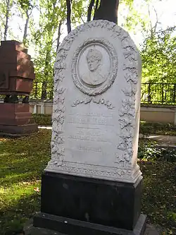 - ↑ Могила на плане кладбища // Отдел IV // Весь Петербург на 1914 год, адресная и справочная книга г. С.-Петербурга / Ред. А. П. Шашковский. — СПб.: Товарищество А. С. Суворина – «Новое время», 1914. — ISBN 5-94030-052-9.