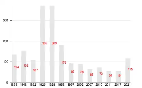 | 1838 | 1848 | 1862[30] | 1928 | 1958 | 1997 | 2002 |