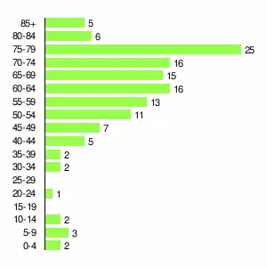 | Жителей | 805 | 833 | 752 | 517 | 443 | 318 | 256 | 193 | 131 |
