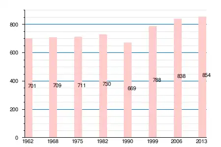 Население коммуны в 2011 году составляло 855 человек[6], в 2012 году — 855 человек[7], а в 2013-м — 854 человека[5].