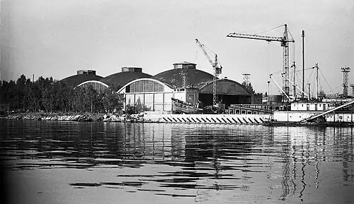 Итоговый проект был подготовлен датской инженерной фирмой «Кристиан и Нильсен»[4] и 5 июля 1916 года началось строительство ангаров. Лётная гавань и ангар для гидросамолётов были построены частично на казённой земле, но заняли и земли ранее принадлежавшие городу и частным лицам. Здания ангаров и вспомогательные постройки возводились как объекты государственного значения в сравнительно короткие сроки без экономии денег и рабочего времени. Первый ангаров (из трёх сообщающихся объёмов) был построен за 15 месяцев. Рабочую силу предоставляли как внутренние губернии Российской империи, так и Эстляндия.
