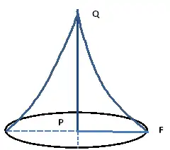 Теория организации экономического пространства А. Лёша строится на понятии конус спроса — зависимость расстояния места потребления от места производства, где Р — точка производства, Q — количество потребляемого товара, F — точка с нулевым спросом, PQ — количество потребленного товара в точке производства, PF — радиус сбыта товара, где издержки по доставке товара выгодны для потребителя, QPF — суммарный сбыт производителем, а при равномерном расселение представляет собой кривой спроса[8].