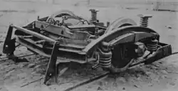 Ходовая часть большинства вагонов была выполнена с сочленёнными одноосными поворотными тележками так называемого "нюрнбергского" типа, как и у вагонов “Бреш”. 17 вагонов (№/№1319–1335)[2] имели несочленённые одноосные тележки Беккера. Кузов при этом опирался на каждую тележку посредством пятниковой поворотной опоры в задней части тележки и двух подвижных подпружиненных опор в передней её части. Рессорное подвешивание тележки Беккера состояло с каждой стороны из надбуксовой листовой рессоры и двух цилиндрических пружин, связанных с концами рессоры подвесками. Диаметр колёс вагона МП составлял 800 мм. На последних 57 вагонах были применены бандажи толщиной 65 мм вместо 50 мм, вследствие чего диаметр колёс увеличился до 830 мм.