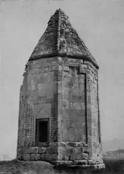 - ↑ Изучавший мавзолеи Азербайджана азербайджанский советский искусствовед и архитектор Абдул Вагаб Саламзаде, исходя из характерных особенностей архитектурно-пространственного решения, делил их на четыре группы: 1) башенные, 2) восьмигранные, 3) купольные, 4) башенно-купольные[4].