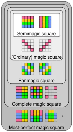 Полумагический квадрат — это n × n квадрат с числами от 1 до n2 в клетках, в котором сумма по каждой строке и каждому столбцу одна и та же. Полумагический квадрат эквивалентен магической разметке полного двудольного графа Kn,n. Два множества вершин графа Kn,n отвечают соответственно строкам и столбцам квадрата, а метка на ребре risj — это значение в клетке полумагического квадрата, находящейся на пересечении строки i и столбца j (полумагический квадрат нередко называют в математике магическим квадратом, но он не имеет всех свойств магического квадрата).