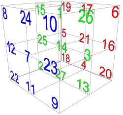 Магический куб — трёхмерная версия магического квадрата. Традиционным (классическим) магическим кубом порядка n называется куб размерами n × n × n, заполненный различными натуральными числами от 1 до n3 так, что суммы чисел в любом из 3n2 рядов, параллельных рёбрам куба, а также на четырёх (пространственных) диагоналях куба равны одному и тому же числу, называемому магической константой куба S: