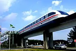 Transrapid, немецкая компания по разработке маглева, построила в 1984 году в Эмсланде испытательную дорогу общей длиной 31,5 км. Дорога проложена между Дёрпеном и Латеном, имеет одну колею с оборотными петлями на каждом конце. Поезда беспилотные, всё управление движением осуществляется из диспетчерского пункта. Максимальная скорость движения, которую удавалось достичь на прямом участке дороги во время испытаний, составила 501 км/ч. Разгон поездов на магнитной подушке до скорости магнитной левитации (около 180 км/ч) производится с помощью контактных рельсов.