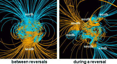 Напряжённость земного магнитного поля падает, причём неравномерно. За последние 22 года она уменьшилась в среднем на 1,7 %, а в некоторых регионах, — например в южной части Атлантического океана, — на 10 %. В некоторых местах напряжённость магнитного поля, вопреки общей тенденции, даже возросла.