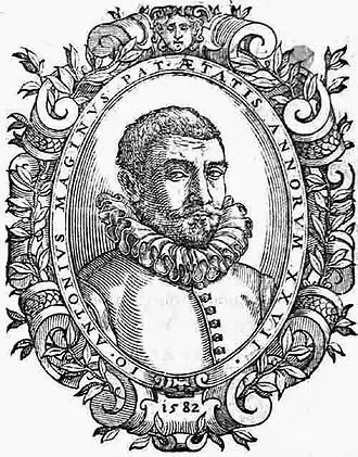 Джованни Антонио Маджини (итал. Giovanni Antonio Magini, 1555—1617) — итальянский картограф, астроном и математик. Известен изданием перевода «Географии» Клавдия Птолемея и подготовкой детального атласа карт итальянских провинций. Маджини первым предложил использовать запятую в качестве разделителя целой и дробной части десятичных дробей[5].