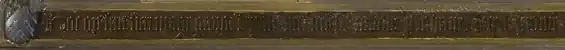 Рама картины содержит подпись ван Эйка, гербы родителей ван дер Пале, надписи в иллюзионистской манере, идентифицирующие обоих святых, и цитату из Библии, воспевающую Деву Марию. Надпись под святым Донатьеном гласит: «SOLO P[AR]TV NON[VS] FR[ATRV]M. MERS[VS] REDIT[VR]. RENAT[VS] ARCH[IEPISC]O[PVS] PR[I]M[VS]. REMIS CONSTITVITVR. QVI NV[N]C DEO FRVITVR.» (Он был младшим из девяти братьев, брошен в воду, возвращён к жизни и стал архиепископом Реймса. Теперь наслаждается сиянием Божиим), под святым Георгием — «NATUS CAPADOCIA. X[PIST]O MILITAVIT. MVNDI FVG[I]E[N]S OTIA. CESU TRIVMPHAVIT. HIC DRACONEM STRAVIT» (Родился в Каппадокии, был воином Христовым. Спасаясь от праздности земной, победил смерть и сокрушил дракона)[29]. В верхней части рамы содержится цитата из Книги Премудрости Соломона, сравнивающая Деву Марию с «незапятнанным зеркалом»[30].