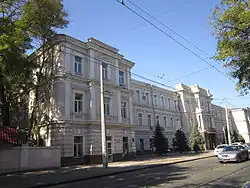 - здание 3-й мужской гимназии на углу ул. Успенской, № 1 и участка Старопортофранковской, позже переименованной в ул. Белинского (1874, соавтор В. Маас), ныне университет МВД;