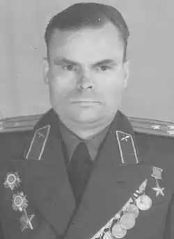 - ↑ Указ Президиума Верховного Совета СССР «О присвоении звания Героя Советского Союза офицерскому составу военно-воздушных сил Красной Армии» от 4 февраля 1944 года // Ведомости Верховного Совета Союза Советских Социалистических Республик : газета. — 1944. — 17 февраля (№ 10 (270)). — С. 1. Архивировано 8 марта 2022 года.