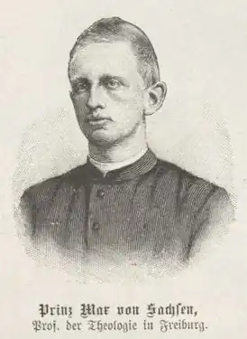 26 июля 1896 года, несмотря на первоначальное сопротивление своей семьи, принц Максимилиан стал католическим священником[3][4]. После этого он отказался от своих притязаний на престол Саксонии, а также выразил решимость отказаться от апанажа от Саксонского королевства, на который он имел право[5][6].
