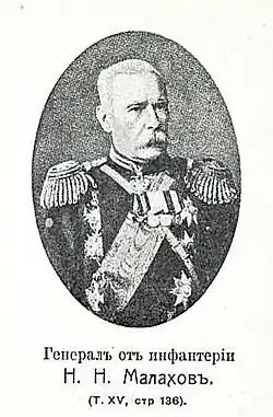 - ↑ Малахов, Николай Николаевич // Военная энциклопедия : [в 18 т.] / под ред. В. Ф. Новицкого … [и др.]. — СПб. ; [М.] : Тип. т-ва И. Д. Сытина, 1911—1915.