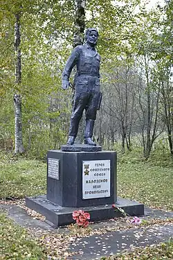 Памятник сооружен по решению парткома совхоза «Белозерский» от 8 июня 197? года. Автор Памятника скульптор — заслуженный художник РСФСР Щепёлкин А. В. Отливал мастер Мячков А. И. Скульптура Героя установлена 26 июня 1977.