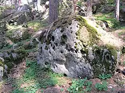 К валунам из песчаника приурочены реликтовые скальные папоротники, в том числе: голокучник Роберта и многоножка обыкновенная, последний из которых не встречается в Заволжье, а в районе памятника природы находится его основная популяция.