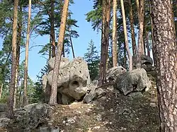 Памятник природы находится в 1 километре восточнее села Смолькино Сызранского района в верховьях реки Уса. Представляет собой живописную долину правого берега реки Усы и подъём на холмы, с абсолютной высотой до 315 метров (Гремячинские высоты). Песчаный склон холмов — это природный комплекс сосновых лесов на скальных обнажениях и валунах диаметром до 3 метров из песчаника палеоценового (саратовский = танетский век) времени. Валуны расположены по всему склону высот, характеризуются обтекаемыми сглаженными формами, часто испещрены множеством округлых углублений. Многие валуны за характерную форму получили персональные названия: Мыслитель, Ладья, Каменный Конь, Воин, Черепаха, Бегемот, Рачейский Сфинкс. Формирование облика валунов длится последние 20 миллионов лет. Их появление стало возможным благодаря тому, что отложения, по большей части представленные неоднородными по степени цементации зеленовато-серыми мелкозернистыми кварц-глауконитовыми и молочно-розовыми кварцевыми песчаниками, могут включать в себя плотные, темные, синевато-серые участки окремнения, не дающие выветриванию разрушить породу целиком.