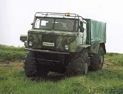 «Мамонтёнок» — плавающий грузовой вездеход с шарнирно-сочленённой рамой на шинах сверхнизкого давления. Производился «Ассоциацией Арктиктранс» с 1990 по 2012[2]гг. Большинство агрегатов и узлов этого вездехода изготавливалось с использованием стандартных деталей от грузовиков Горьковского автомобильного завода, что обеспечивало простоту в эксплуатации, облегчало техническое обслуживание и ремонт.