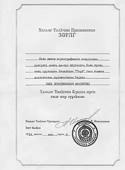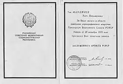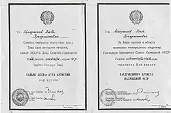 - ↑ Манджиева Александра Боваевна, Заслуженная артистка Республики Калмыкия. Дата обращения: 4 мая 2024. Архивировано 30 апреля 2024 года.