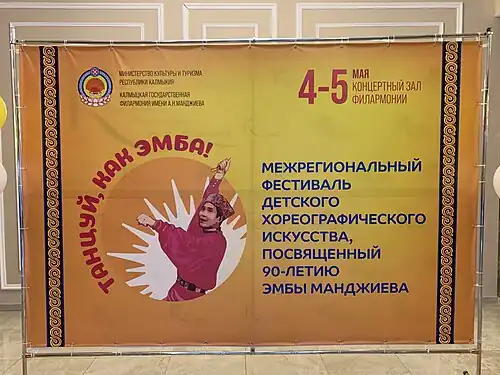 - Детский образцовый художественный ансамбль «Герел» носит имя Эмбы Манджиева.