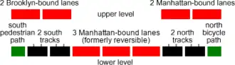 Маршруты N (линия Си-Бич) и Q (линия Брайтон) используют южную сторону моста для связи с Бродвеем.
