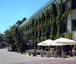 Увитый зеленью фасад здания Библиотеки Варшавского университета