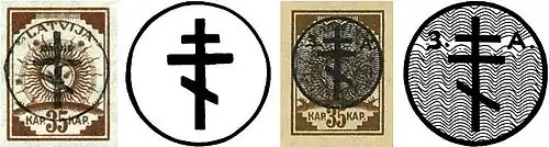 Этот выпуск с очень большой долей вероятности никакого отношения к ЗДА не имеет, так как его производством занимался судья Кун, который в одной из своих статей заявил, что марки были выпущены «Комитетом латвийского самоуправления», о чём должны свидетельствовать буквы «L» и «P» («Latvijas Pārvalde»), расположенные на надпечатках по обе стороны креста (эмблема ЗДА):