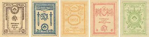 В том же 1919 году ОКСА выпустил серию из пяти марок оригинального рисунка (Mi #15—19; Yt #1—5). Марки были без зубцов, отпечатаны типографским способом на простой и тонкой бумаге. На них изображены значок Особого корпуса Северной Армии и дана аббревиатура его названия «ОКСА».