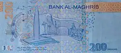 200 дирхамов 158×78 голубой портреты Мухаммеда VI и Хасана II окно мечети Хасана II портрет Мухаммеда VI;