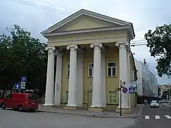 Западный корпус был перестроен в формах раннего классицизма, особенно отчётливых в главном фасаде с фронтоном на четырёх ионических колоннах и ионическими пилястрами между окнами[4].