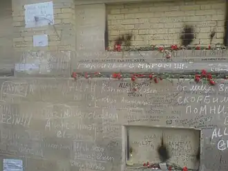 Стена старого корпуса академии 3 мая 2009 года, через три дня после теракта