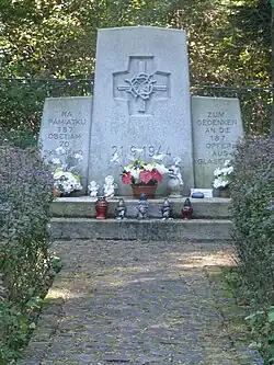 После этого большинство других мужчин были расстреляны, лишь немногим удалось бежать в лес. Расстрелянные несколько дней лежали на открытом воздухе и были похоронены родственниками в братской могиле на краю леса после ухода партизан[1] .