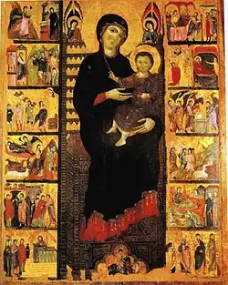 Фигура Мастера Сан-Мартино — самая загадочная во всей пизанской живописи XIII века. С одной стороны, его творчество можно считать высшей точкой развития пизанской живописной школы, с другой, о нём совершенно ничего не известно, поскольку до сих пор исследователи не могут прийти к единому мнению с какой конкретной исторической фигурой его можно идентифицировать. На этот счёт высказывались разные предположения, одни считали, что произведения, созданные этим мастером, написал Чимабуэ, другие считали, что их автор — художник Раньери ди Уголино, сын Уголино ди Тедиче. Высказывалась ещё одна гипотеза, что таинственный Мастер Сан-Мартино — это тот же художник, который расписал крипту в Ананьи в 1250—60-х годах. Однако тонкий искусствоведческий анализ приводит к выводу, что это оригинальный мастер, в творчестве которого просматривается множество точек соприкосновения с искусством Чимабуэ. В качестве самой последней версии (2005 год), которая основана на тщательнейшем анализе произведений из пизанского музея Сан-Маттео, можно привести заключение учёных, что Мастер Сан-Мартино и Уголино ди Тедиче — это один и тот же художник. Он работал в характерной для второй половины века византийской манере, влияние которой особенно заметно в мелких сценах (в клеймах), создавая самостоятельные вариации на её темы. В картинах Мастера Сан-Мартино просматривается влияние скульптуры Никколо Пизано.