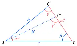 - Причина ошибки: равенство действительно имеет место для любого треугольника, но из него не следует равенство углов — это показывает и формула У любых двух углов, дополняющих друг друга до синусы одинаковы[21].