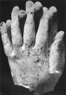 Фантом «Джон Кинг», по описанию Флоренс Мариатт, на глазах у всех держал «грифельную доску так, что обе руки его были видимы; затем одна рука стала уменьшаться до размеров ручки детской куклы»[28]. Профессор Ботацци описывал эпизод, когда он сжал в своей руке материализованную кисть, казалось, ничем не отличавшуюся от обычной человеческой, а когда сдавил её сильнее, та исчезла, но «не стала меньше — просто растаяла, растворившись»[53].