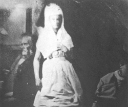 Впоследствии, по утверждению медиума, «…когда фотографическая пластина была проявлена, на снимке выявилось нечто поразительное. Материализованная фигура, попавшая в объектив, была одета в белые ниспадающие одежды. Волосы опускались на плечи — непокрытые, как и руки. Фигура, скорее всего, принадлежала другой женщине, но лицо было, несомненно, моим… А на стуле чуть позади располагалась фигура в моей одежде, с неповреждёнными чёрными повязками на запястьях и лентой на талии, но лицо её было мне незнакомо, и эта незнакомка взирала на происходящее с огромным удовлетворением и самодовольством…» Присутствовавшие «не смогли понять смысла происшедшего», а дух-посредник «Уолтер», когда его спросили об этом, заметил лишь: «Да, многое тут перемешалось»[42].