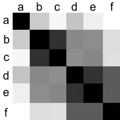 Полученную матрицу можно изобразить в виде тепловой карты. Здесь более тёмный цвет соответствует меньшему расстоянию между точками.