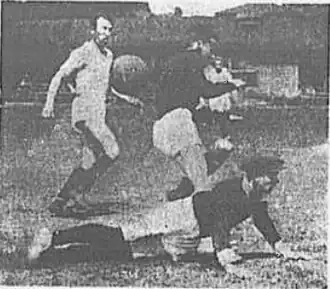 - ↑ Согласно подробнейшему и компетентному отчёту «ФиС», которому посвящены две страницы номера, "... на 19 мин. Бутусов забивает Николаеву мяч - 2:1" и "... на 42 мин. Кусков бьет по воротам с краю, но вместо удара получается навес, который перехватывает Бутусов. Уверенный, чёткий удар - и счёт 4:1". Двумя номерами позже в «ФиС» были помещены высокохудожественные шаржи на игроков этого матча, не позволяюшие усомниться в том, что присутствовавшие на матче авторы опубликованных материалов прекрасно знали в лицо участников этой игры и не могли спутать М.Бутусова с Г.Ивановым, указанным автором этих двух мячей в позднейших питерских источниках. Одно время в питерской прессе тех времён нередко голы М.Бутусова «замалчивались» (упоминались без указания авторства) или их авторство передавалось другим футболистам в рамках своеобразной борьбы с так называемым «чемпионством», типичным представителем которого и был объявлен М.Бутусов.