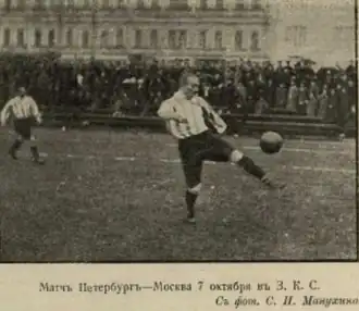 - ↑ Сборная России' 1912: Россия (Санкт-Петербург) - Россия (Москва) - 2:2 (неопр.). Сборная России по футболу — rusteam.permian.ru. Дата обращения: 17 июля 2022. Архивировано 8 ноября 2021 года.