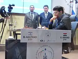 - ↑ Матч Ананд — Гельфанд начинается через два дня Архивная копия от 2 октября 2013 на Wayback Machine // www.chessworldweb.com, 08 мая 2012