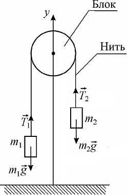 Мы считаем, что нить идеальна (то есть невесома и нерастяжима) и блок невесом, значит и , получим:
