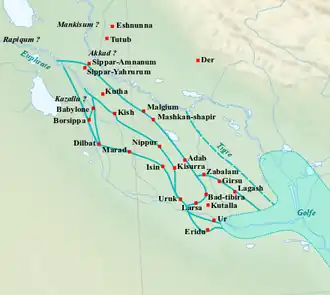 Город расположен в Южной Месопотамии, на низком холме, возвышающемся на 2—5 метров над окружающей равниной. Он находится к востоку от Вавилона и к северу от Ниппура.[1]