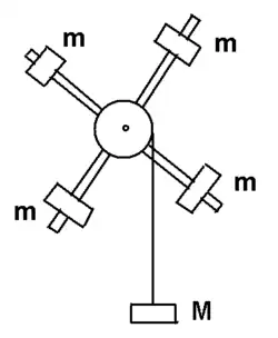 Здесь — момент инерции стержней с грузами относительно оси вращения, — угловая скорость вращения при полном опускании груза, — высота полного опускания груза. Из последней формулы видно, что чем больше момент инерции (т.е. чем дальше расположены грузы относительно оси вращения), тем меньше угловая скорость вращения маятника.